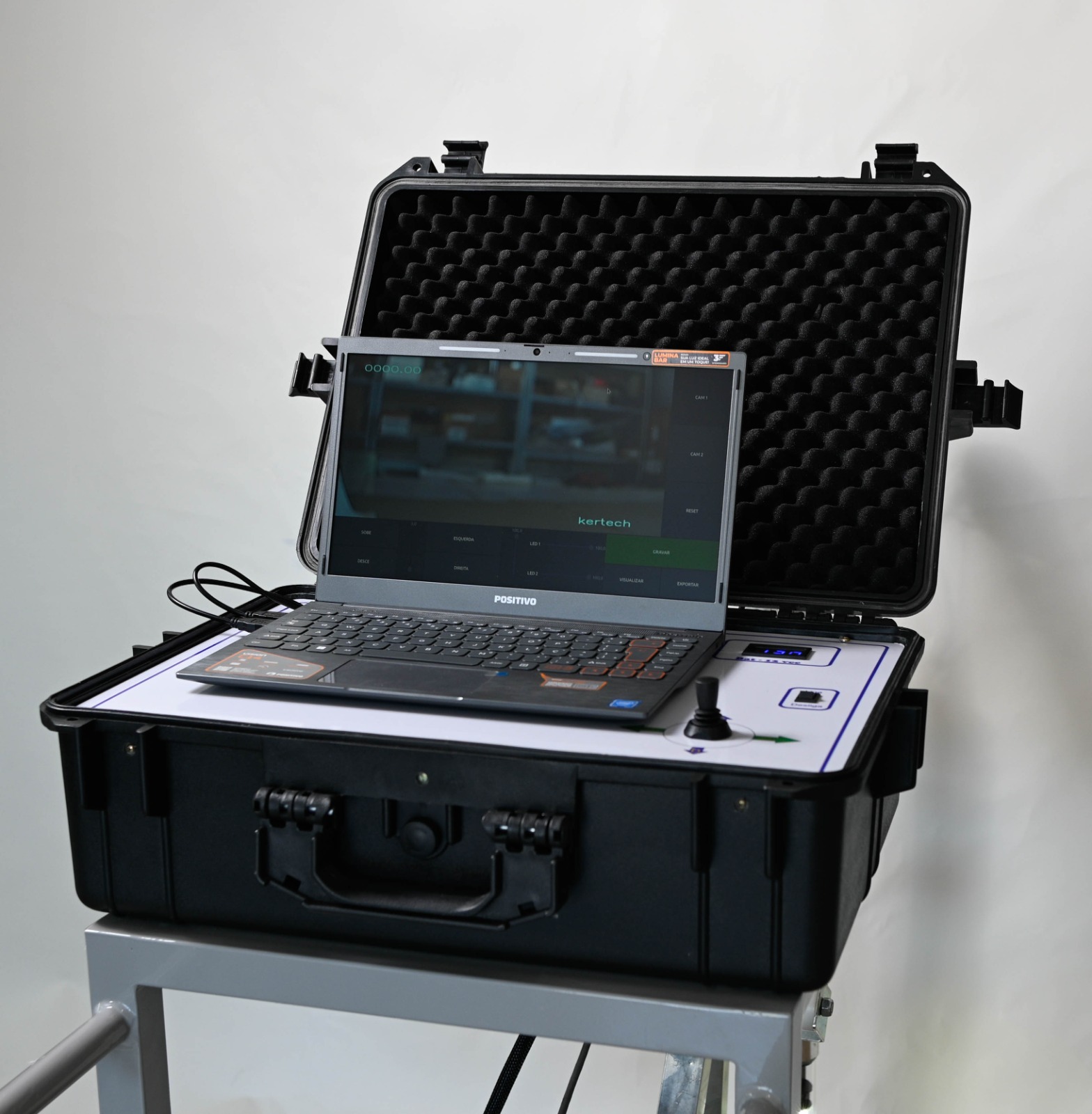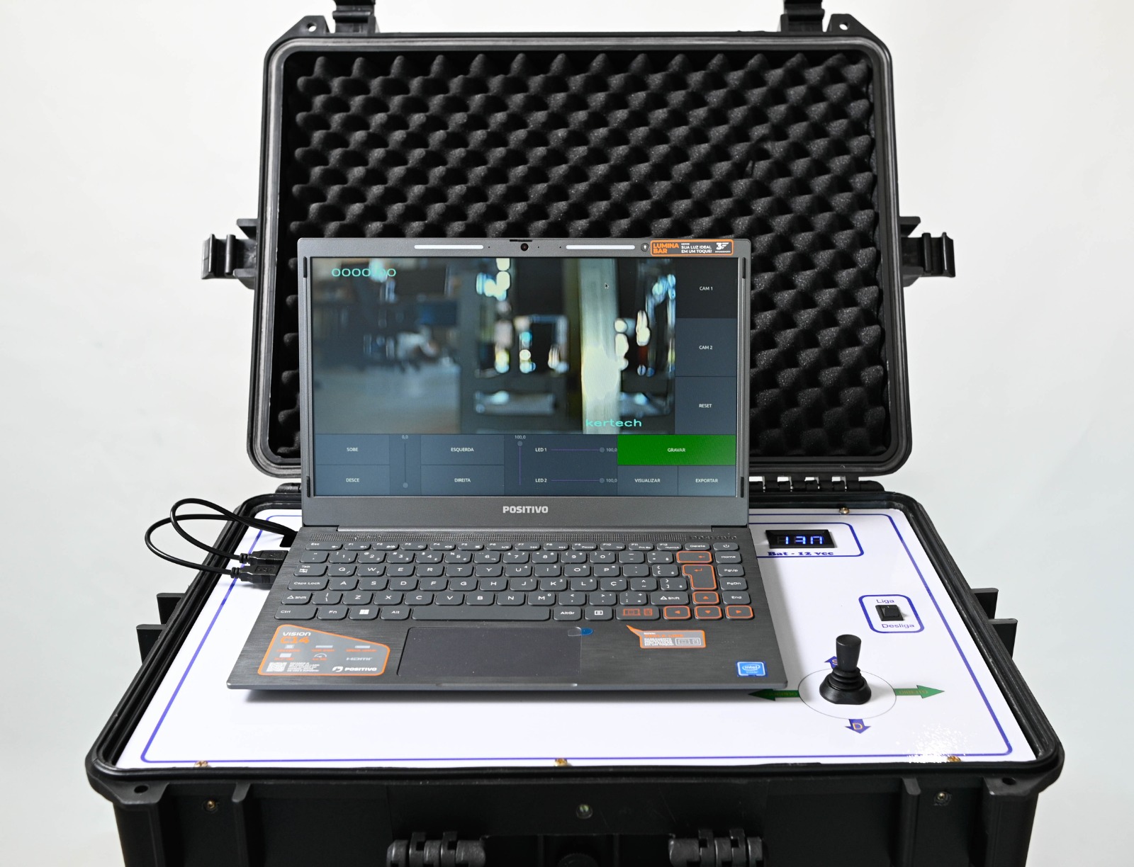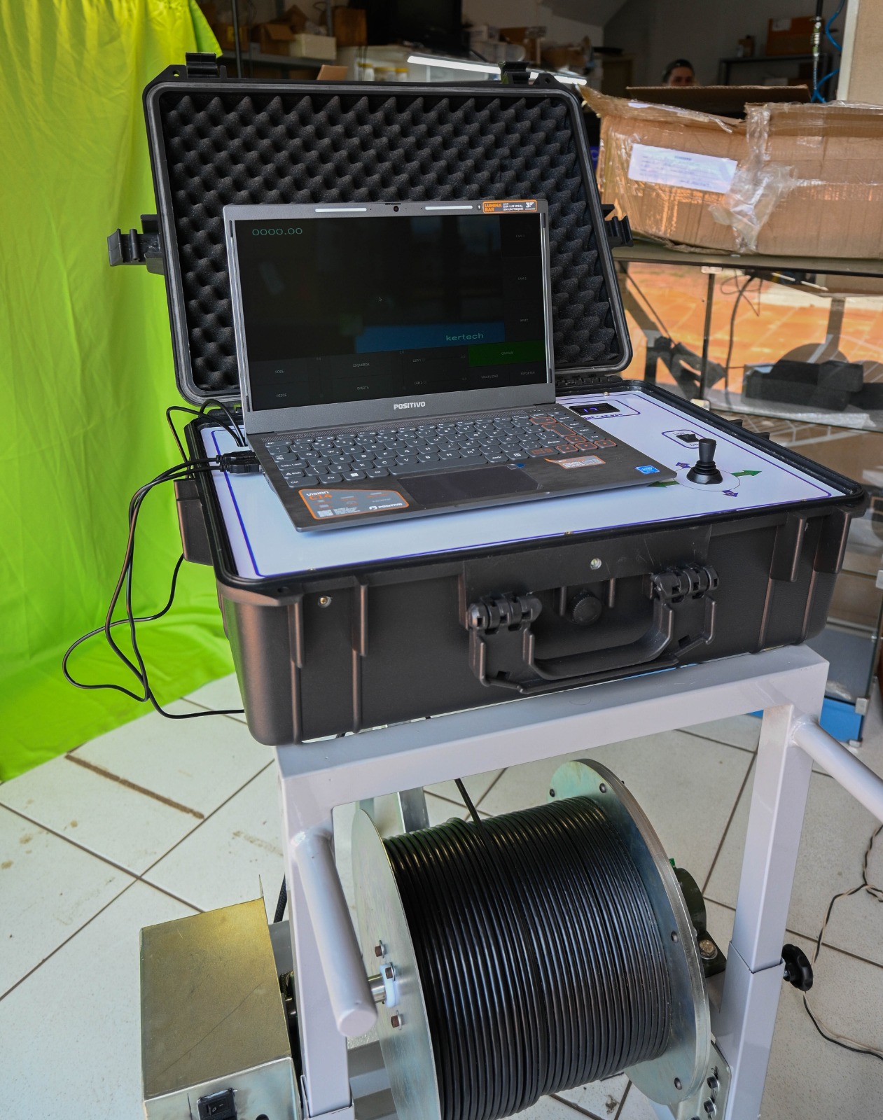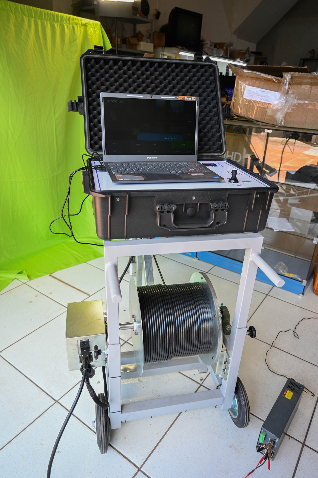 ELINE-300-R da Kantex: Sistema de inspeção para poços artesianos com câmeras HD, iluminação LED e operação em até 300 metros de profundidade. Tecnologia robusta, transmissão em tempo real e armazenamento seguro para análises precisas em condições desafiadoras.